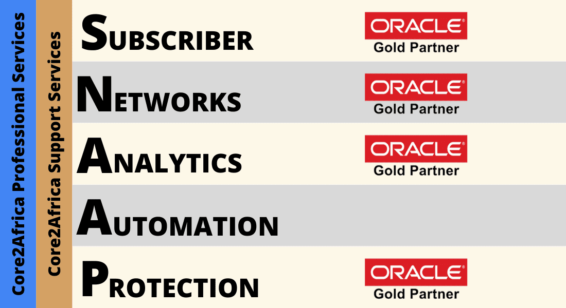 Core2Africa promotes, sells and implements Oracle Communications Products., including ACME Packet Session Border Controllers (SBC), Policy and Charging Rules Function (PCRF), Oracle Communications Operations Monitor (OCOM) and Oracle Communications Digital Signalling Routing (DSR). All implementations are conducted using Core2Africa Professional Services, following a Structured 7-Step End-to-End Approach, and supported by Core2Africa Maintenance & Support Services.